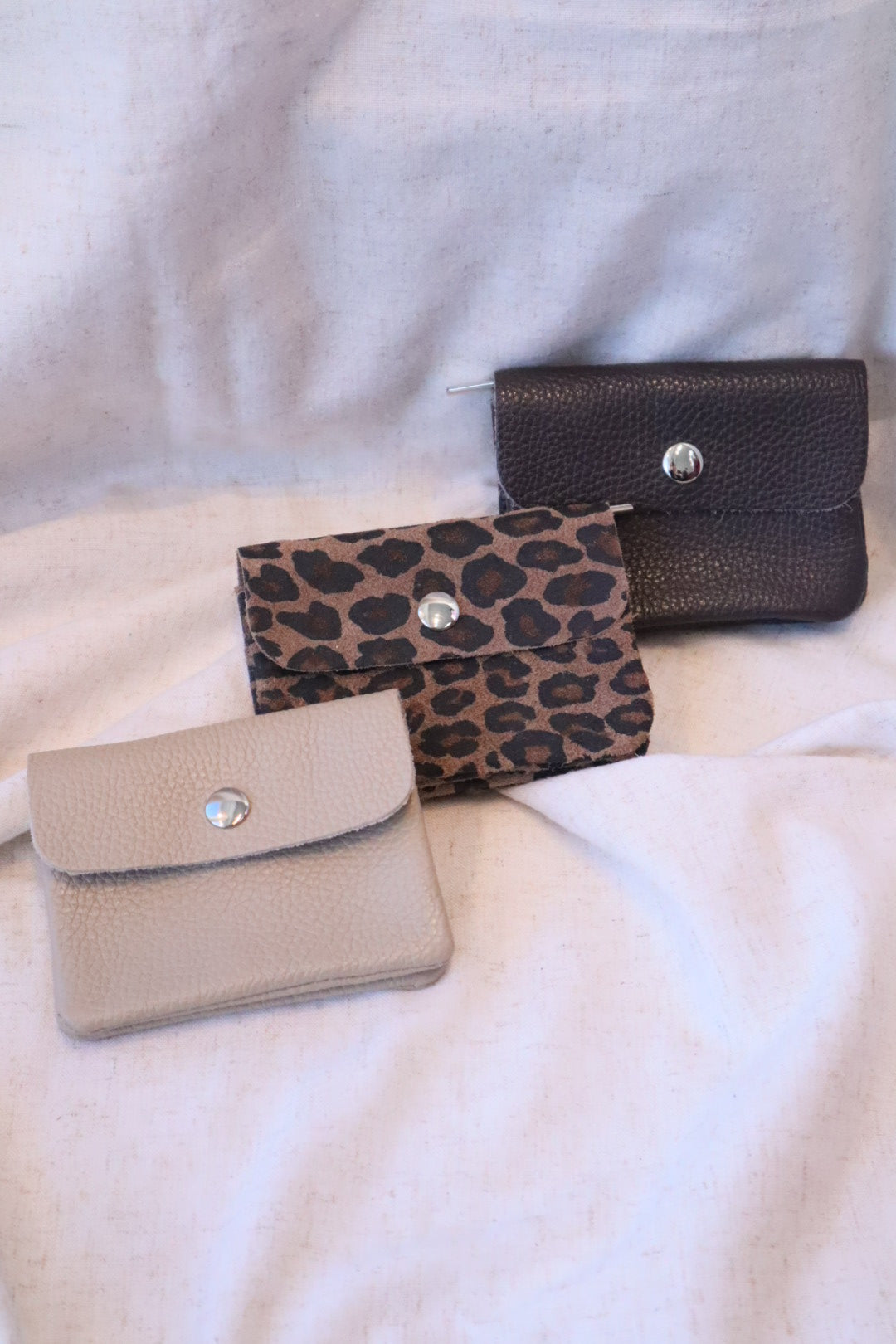 Erhältlich aus glattem Leder in Beige und Braun und aus Wildleder in einer Leo-Optik